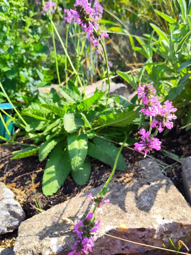De Betonie is een plant dat in eerste instantie niet heel erg opvalt. Ik heb hem zelf de bijnaam ´De Punker´ gegeven, omdat de plant haar blaadjes dichtbij de grond blijven. De bloemen staan daarentegen fier omhoog, bovenaan een stengel. De stengels worden tussen de 30 a 40 cm hoog. Uiteraard vinden hommels en bijen vinden deze plant ook geweldig. Elke keer wanneer ik de plant bekijk zie ik er minimaal 2 in, op en omheen vliegen.